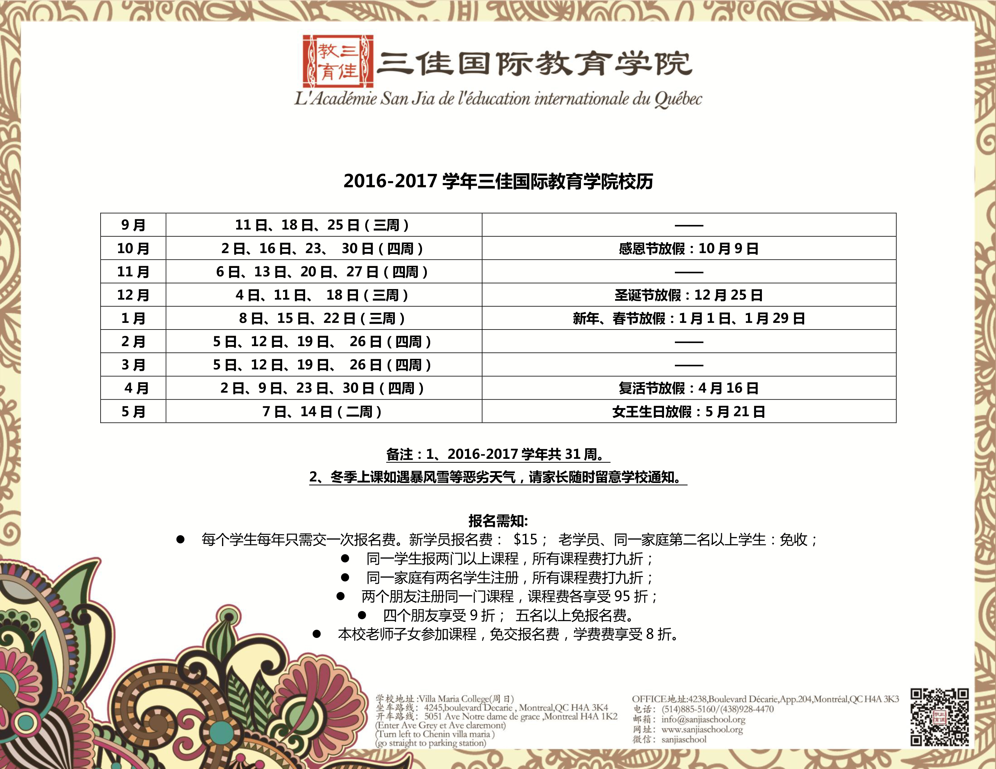 • 校历